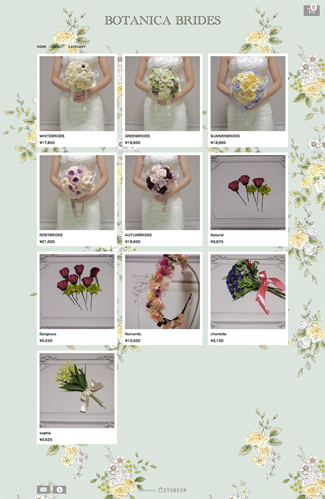 ウェディングフラワーやウェディングアイテムを制作・販売するBOTANICABRIDES様の、ウェブサイトおよびオンラインショップを制作させて頂きました。
