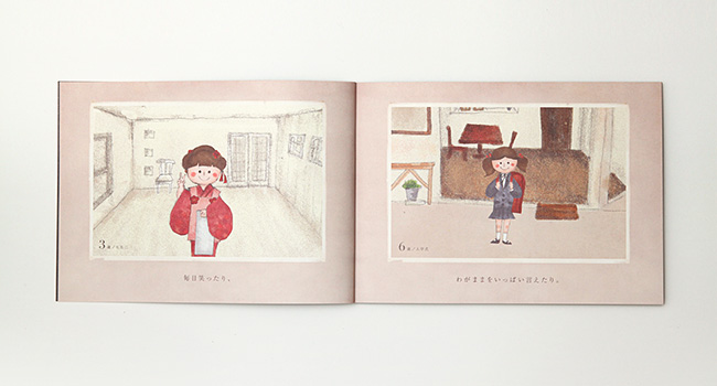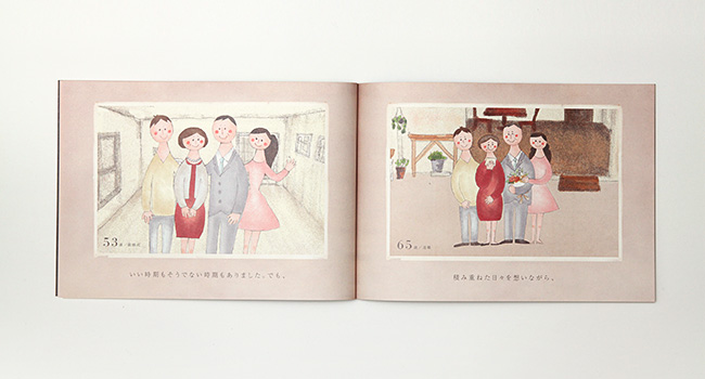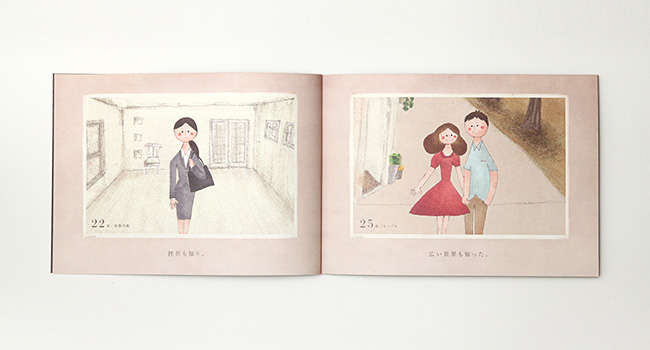 コンセプトブックでは、あるひとりの女性をキャラクター化し、主人公に設定。彼女が生まれ、成長していく過程で、人生の節目で思い出を写真に残していく様子を、絵本調のストーリーで表現。