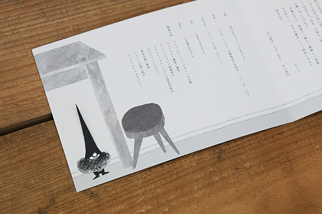 中面はコビトの住んでいる部屋に、来ていただいたお客様へのご挨拶という形で、文面を書きました。