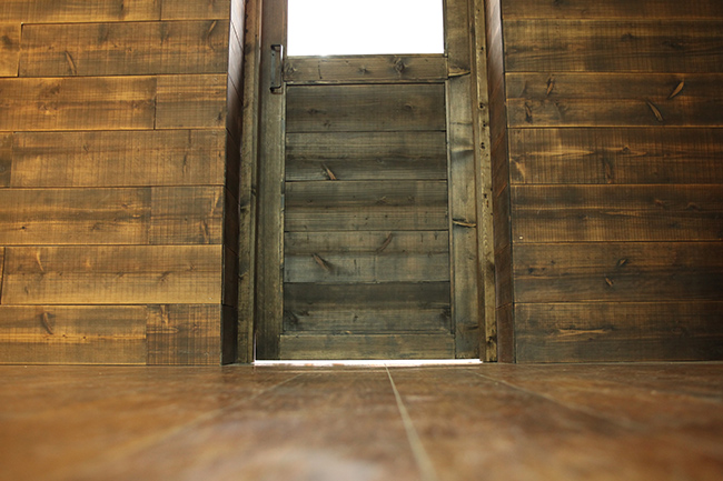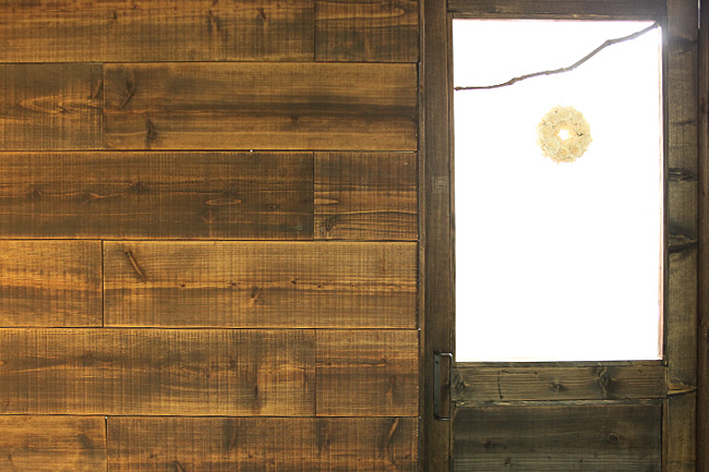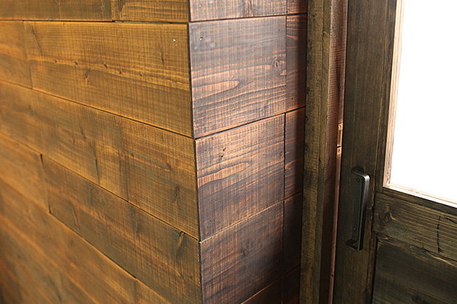 オフィスの内装はメンバーでDIY。壁を漆喰で塗るところから始め、エントランスには、古材の足場板を使いカラーオイルを使って塗装をした、板張りの壁とドアを新設。リサイクルで手に入れたリンゴ箱を活用した飾り棚を作り、ギャラリースペースとして活用できるようにしています。 また、事務所の一角には倉庫として活用する小屋も作りました。ドアを入ると、水回りを囲むカウンターや、打ち合わせ用のテーブルなども作っています。