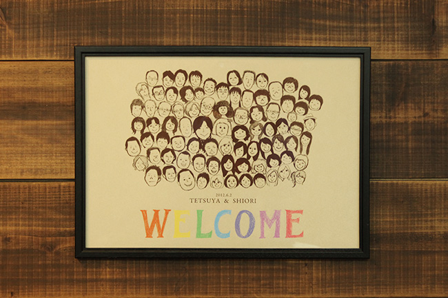 来場者全員の似顔絵をイラストで描いたウェルカムボードは、来場者がボードを見ながら自分の姿を探せる楽しみと、来ていただいてありがとうの気持ちを、同時に表現しました。